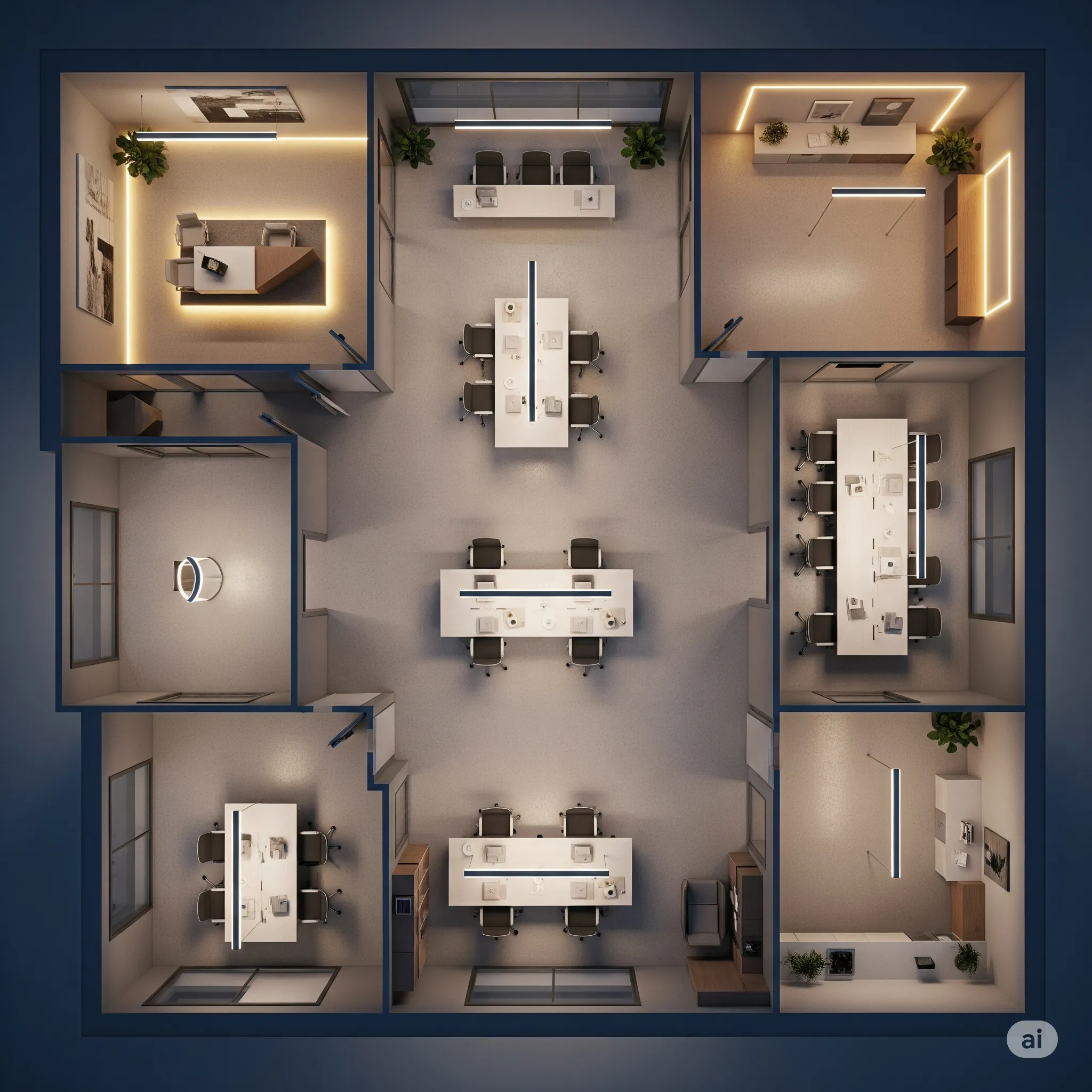 Tailored LED Lighting Layouts Designed For Style, Function, And Efficiency In Any Space, From Offices To Warehouses.